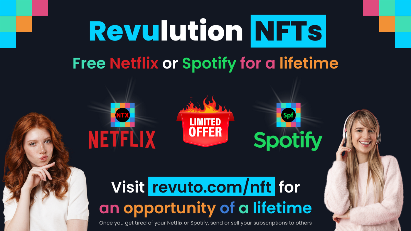 - Only 10K Revulution NFTs available in total, for Netflix or Spotify